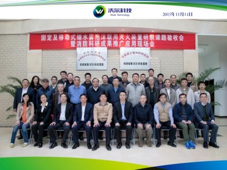 2015年11月14日,消防应急救援装备公安部重点实验室在上海组织召开重点实验室开放课题《固定及移动式细水雾泡沫联动灭火装置研制》验收会暨消防科研成果推广应用现场会。上海研究所所长兼重点实验室主任闵永林出席会议并致欢迎辞。会议邀请了青海、广东、西藏、天津、四川、北京、江苏、安徽等八个省市公安消防总队有关领导出席会议,特别邀请了国家认监委认证监管部李文龙副主任以及海军司令部航海保障部、中船重工下属科研机构、海军工程大学等相关方面的领导专家莅临会议。会议由重点实验室副主任杨昀主持。 验收会议上,课题承担单位沃尔科技有限公司蒋祖光总经理代表课题组作工作情况报告,课题副组长王丽晶研究员代表课题组作技术情况汇报。来自大学、研究所、消防部队的7名验收专家对课题研究情况进行了技术质询。经专家组讨论后认为:课题组研制的移动式细水雾泡沫联用灭火装置可在单射流、四射流和细水雾间自由切换,操作机动性强,灭火介质充装方便,日常使用维护简单;课题组研制的结构紧凑的固定式高压细水雾泡沫联用灭火装置智能化程度高,可自动探测、启动灭火。验收专家组一致同意该课题通过验收,认为课题成果综合水平达到了国内领先水平。 验收会后,与会领导专家参加了在沃尔科技有限公司召开的消防科研成果推广应用现场会,实地参观了工厂生产流水线,观摩了电动手持式细水雾泡沫联用灭火装置、固定式泡沫高压细水雾联用灭火设备产品的实体灭火演示,并展开技术交流研讨。 《固定及移动式细水雾泡沫联动灭火装置研制》课题是重点实验室成立后首个通过验收的开放课题,会议取得了圆满成功。本次验收会充分发挥了重点实验室的学术交流与成果转化的平台作用,加强了消防科研与消防实战的紧密结合,拓展了消防科技合作的领域范围,有力提升了重点实验室的科技引擎推动作用。
